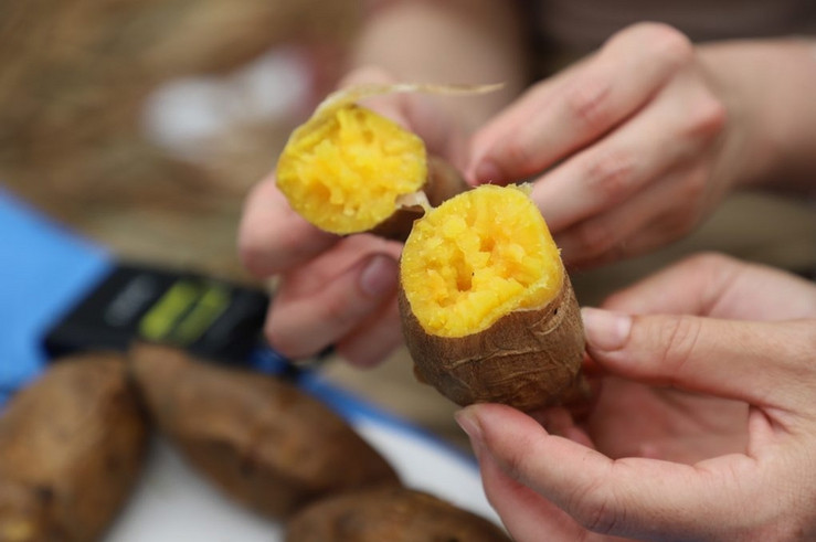 這地瓜出爐表面還有一層糖蜜,可見得有多甜,吃得大家允指回味