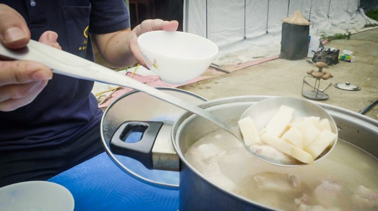 開飯了,姿怡姐分享一個內行人獨特吃法:「冷筍湯」,筍湯煮好加一點鹽巴調味,冰到冰箱就是清涼甘甜的涼湯囉!吃著熱騰騰的地瓜,品嚐美味的竹筍三層肉湯,伴著姿宜姐爽朗的笑聲,原來農村生活可以這麼愜意、有趣,夫妻一起為了維護這片土地而努力,田園的美好、心靈的富足,讓人回到城市仍然餘韻猶存。